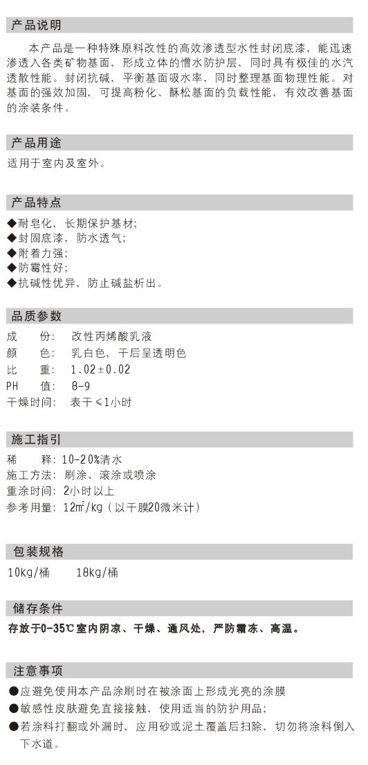 高效渗透型水性封闭底漆