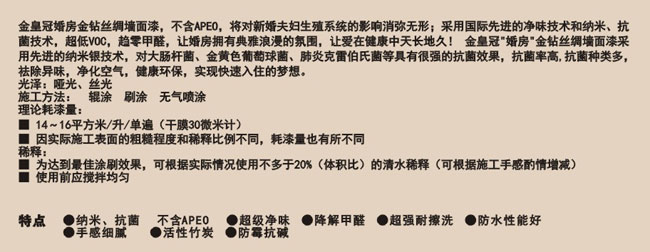 金皇冠涂料主要研发与经营色彩化学、机械、电子产品的综合型企业,产品达几十万种。作为主打产品的色彩化学在国际市场保持领先地位。 金皇冠涂料致力于研究生产建筑涂料、家具漆、木器漆、PE漆等产品。