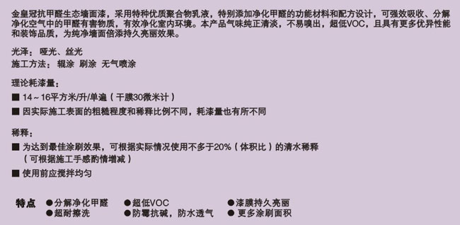 金皇冠涂料主要研发与经营色彩化学、机械、电子产品的综合型企业,产品达几十万种。作为主打产品的色彩化学在国际市场保持领先地位。 金皇冠涂料致力于研究生产建筑涂料、家具漆、木器漆、PE漆等产品。