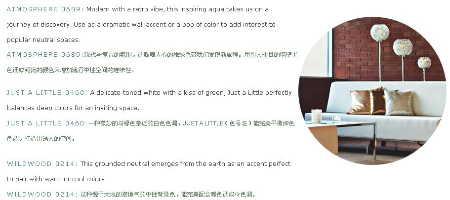 无论您是要翻新一个小角落还是重涂您的整个家园,色彩都可以赋予您一个新的外观灵感并将您带入到最喜欢的空间之中。我们配合当今的潮流色彩,为您提供独特,强烈和富有灵感的调色板。请欣赏!